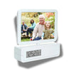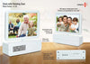 The A122 Clock features a sophisticated design with a rotating dual photo frame for 3.5 x 5-inch photos. This elegant timepiece allows you to showcase two cherished memories while keeping track of time. Its rotating frames provide easy access to both photos, making it a functional and stylish addition to any desk or tabletop.