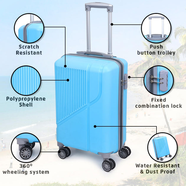 The bag includes a secure 3-dial lock system, providing peace of mind by protecting your belongings from unauthorized access. Compact yet spacious, it meets most airline carry-on requirements, making it an ideal choice for both short trips and as an additional travel companion. The striking blue color adds a touch of elegance, ensuring you travel in style.