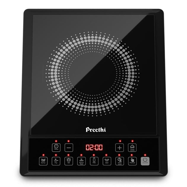 The Preethi Indicook IC124 Induction Cooktop offers powerful 2100W performance with a sleek black design. Its soft-touch buttons and crystal glass surface ensure easy, precise control and stylish looks. Efficient and modern, it’s perfect for quick, convenient cooking.